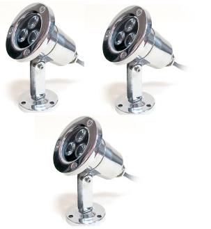 Подсветка для фонтана в корпусе из нержавеющей стали, 3 белых светодиода, комплект 3 шт.